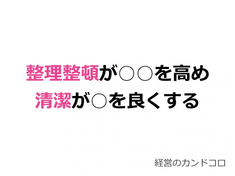 整理整頓は仕事の”効率”を高めます。清潔は仕事の”質”を良くします。