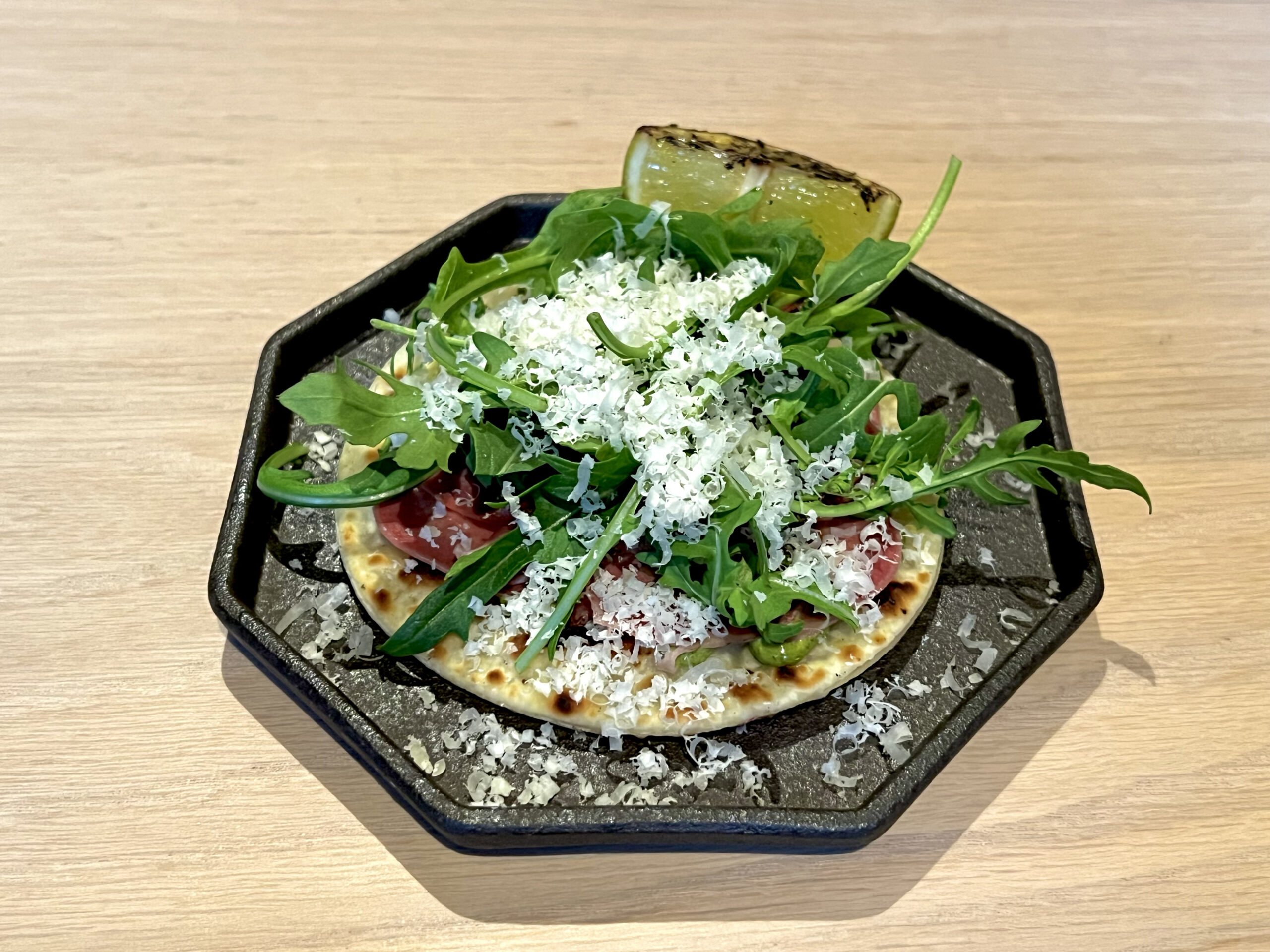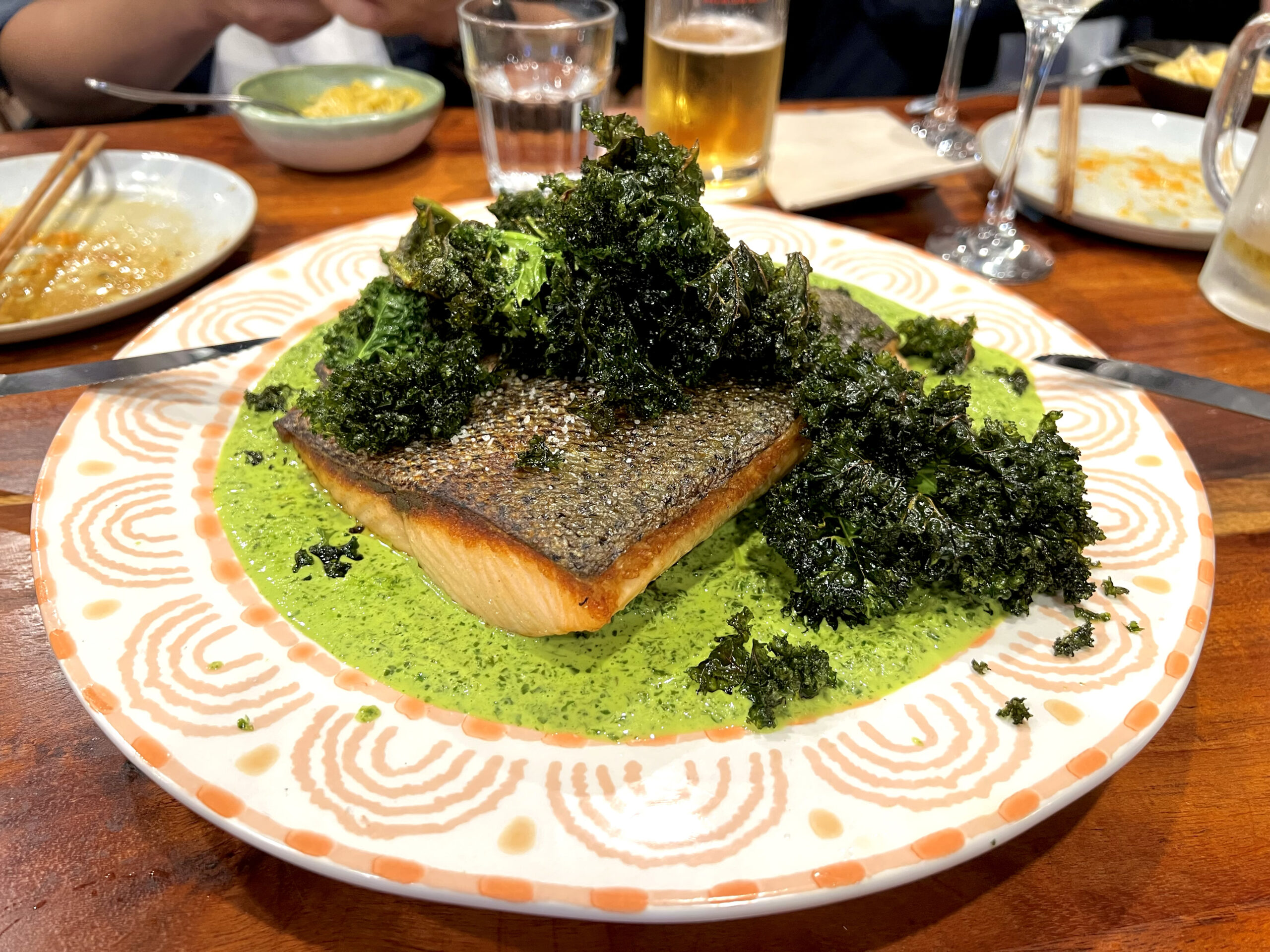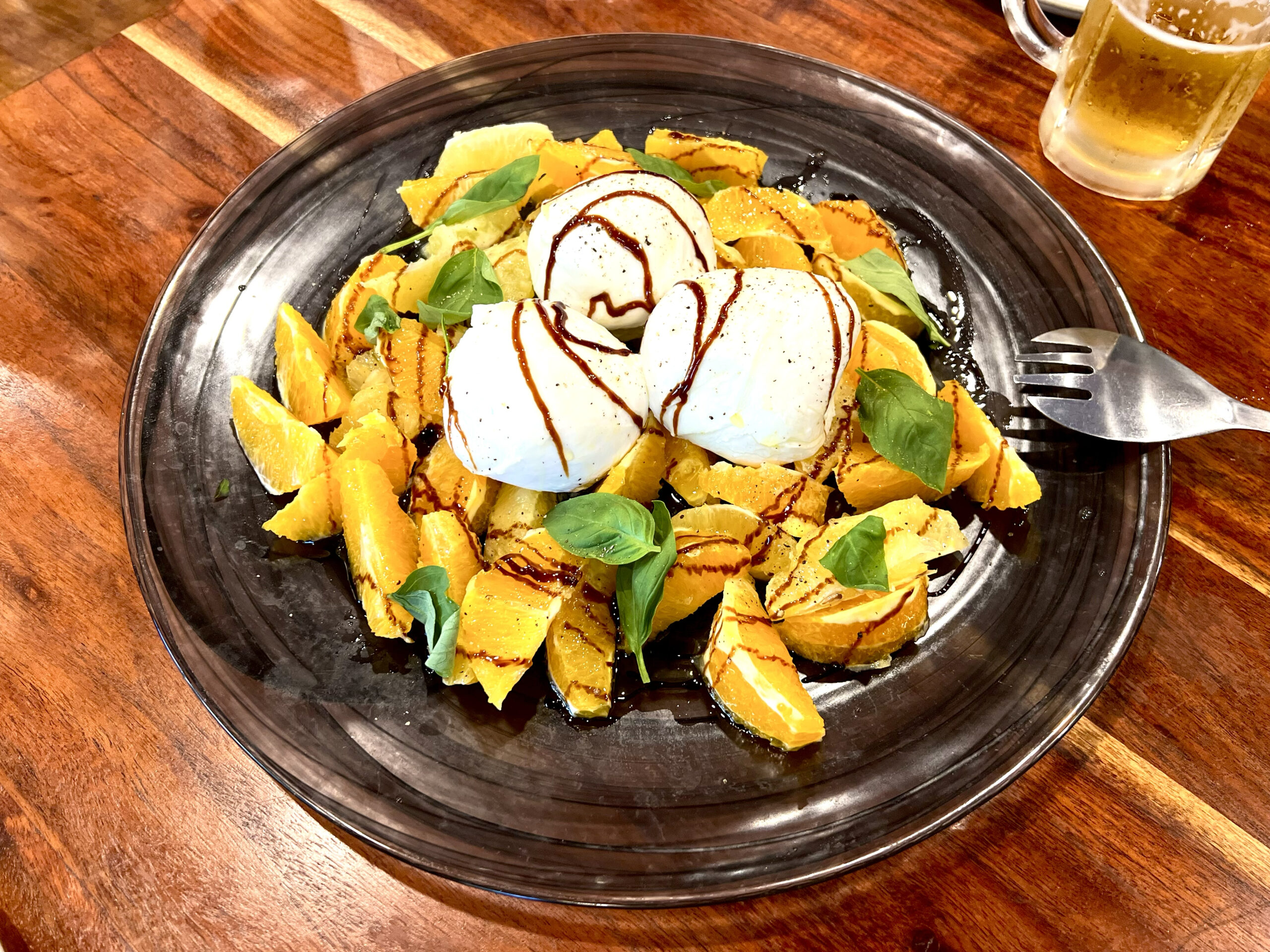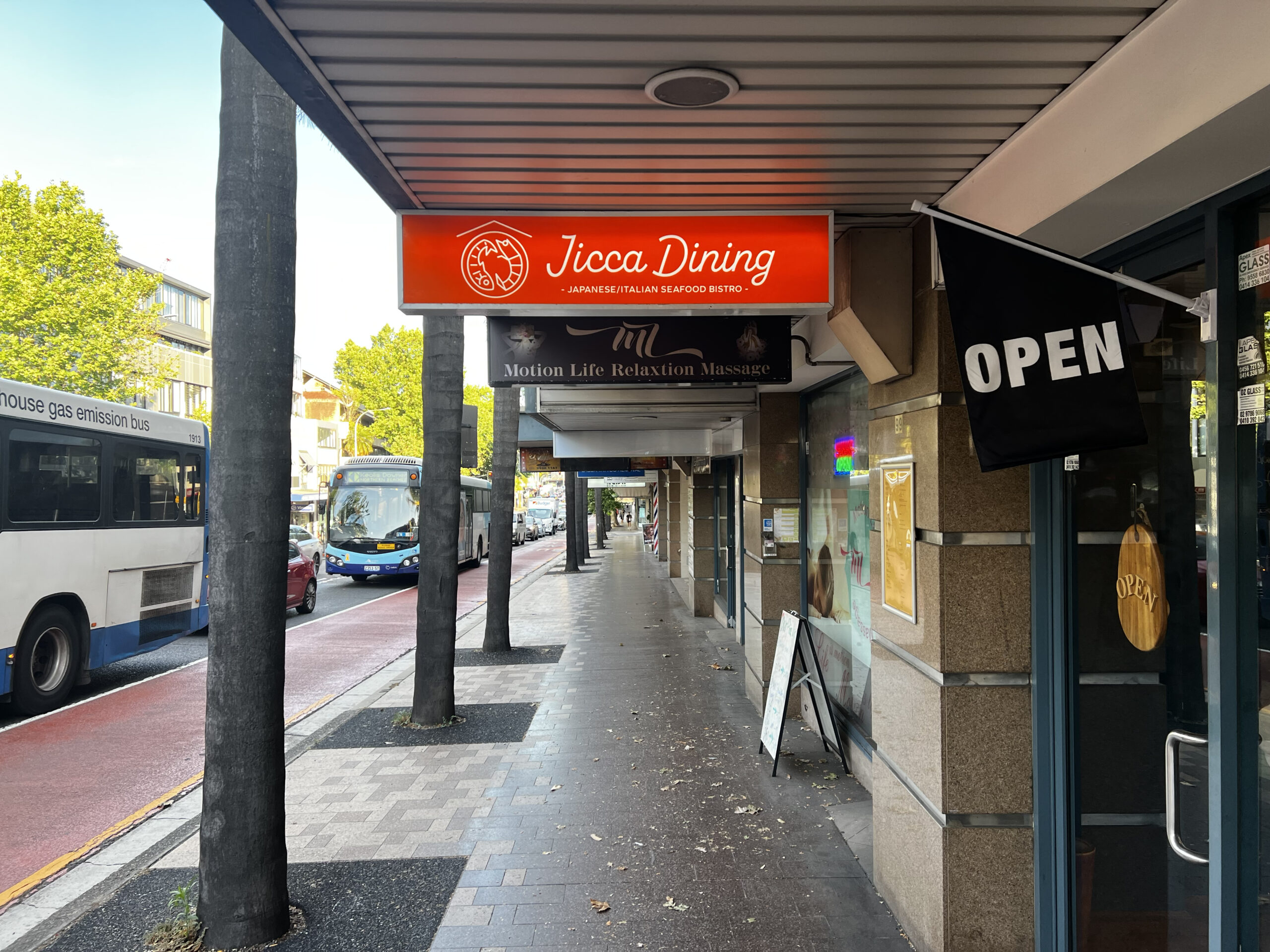 シドニーで日本人が経営しているレストラン「Jicca Dining」で、食事をしながら話を聞く。オーガニック⾷材販売会社「True Blue Organics」の代表をされているアッグリング・コールス 和美さんから話を伺う。