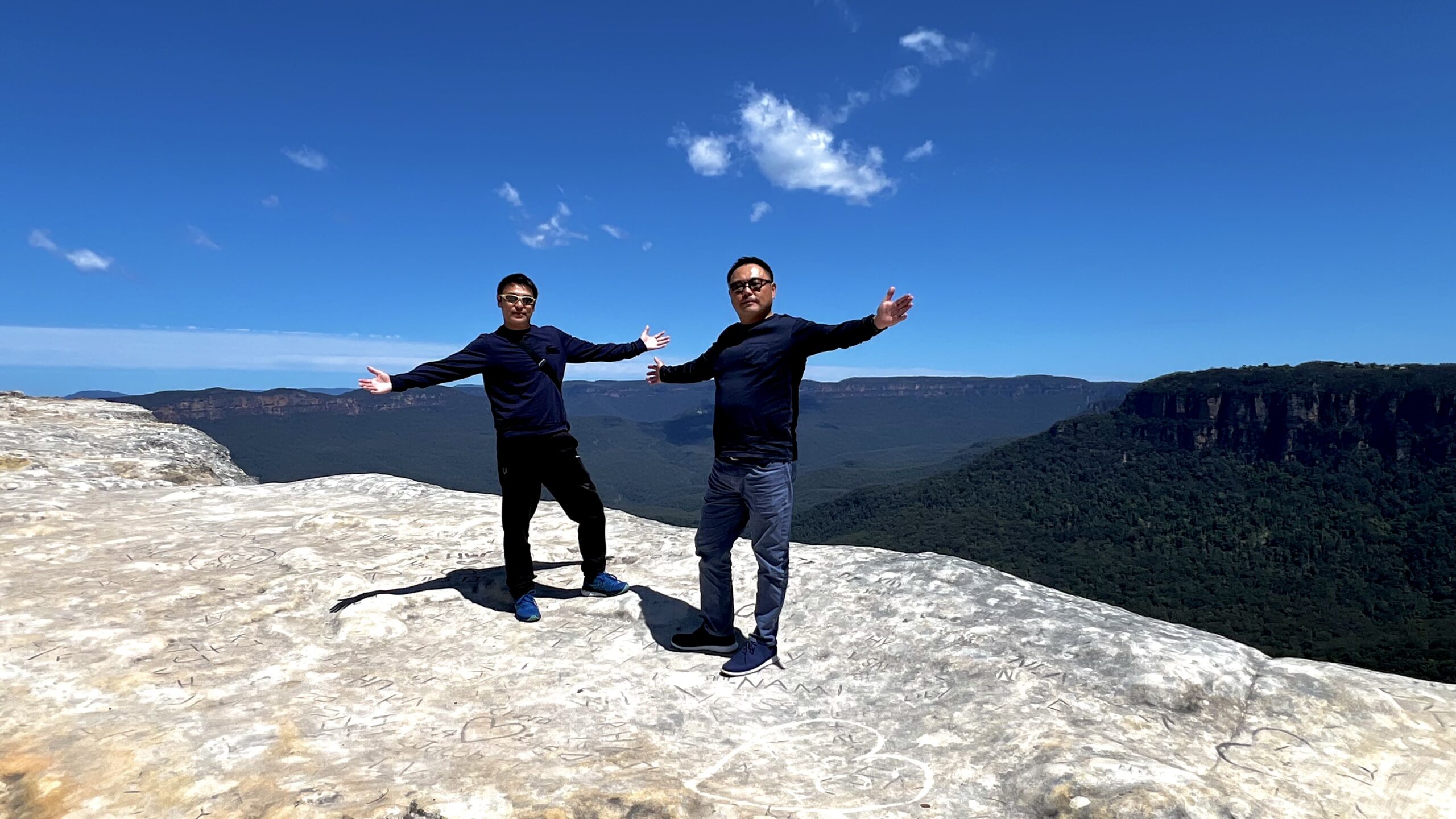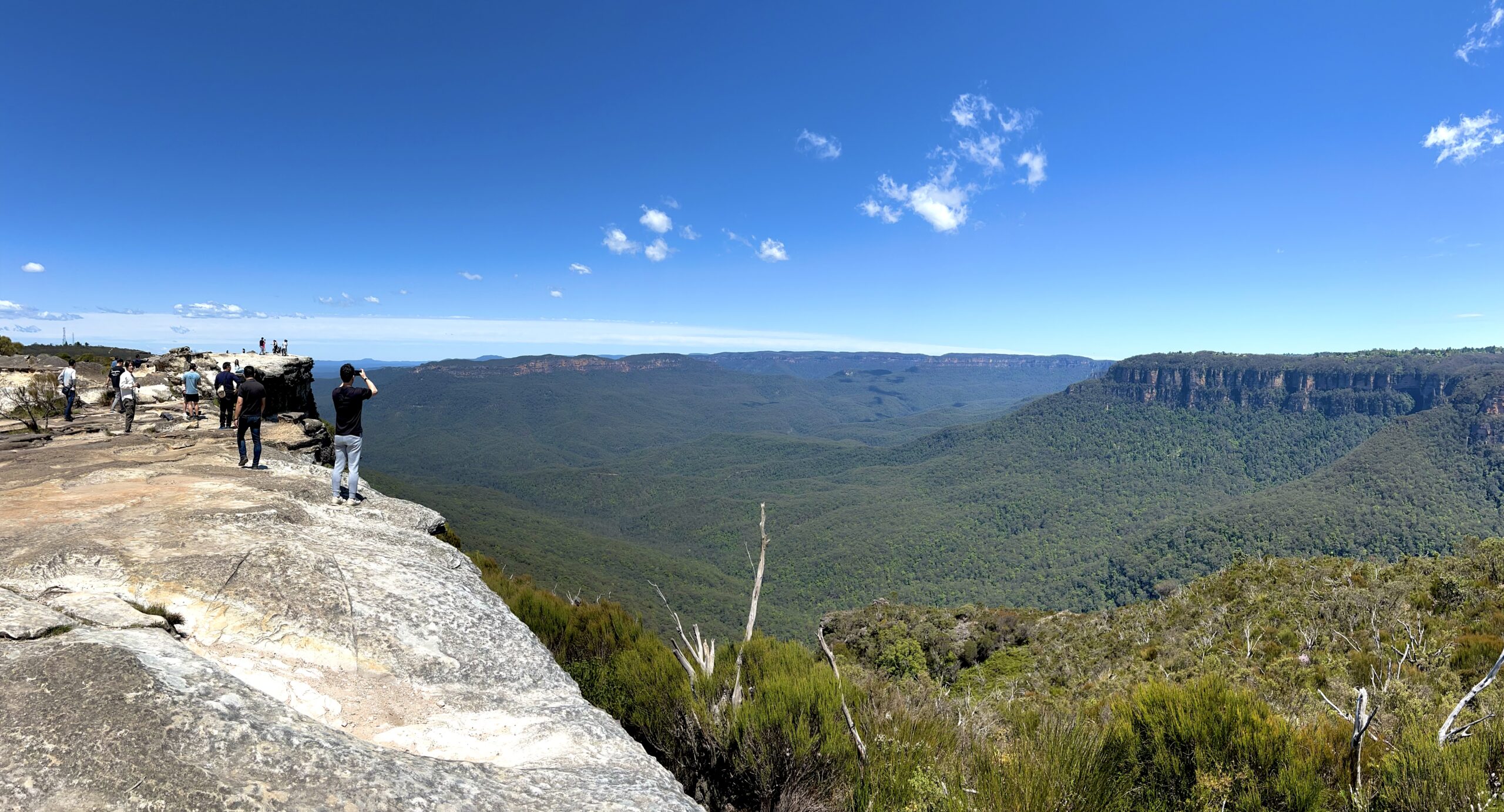 シドニーから西へ約2時間。高原の避暑地として知られるブルーマウンテンズ国立公園。ブルーマウンテンズは、標高1,300メートル近い山岳地帯に砂岩や滝、渓谷などの雄大な大自然が連なっているのが最大の特徴。 茶色の荒々しい岩肌の絶壁と、約90種類にも及ぶ広大なユーカリの林で埋め尽くされてる。